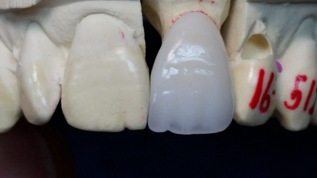 - Labial and incisal layered with veneer porcelain (Most aesthetic)